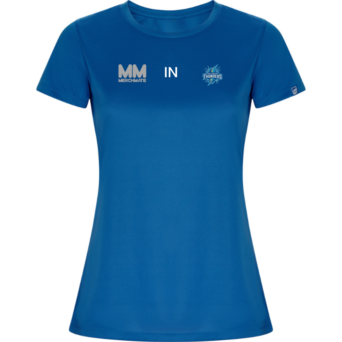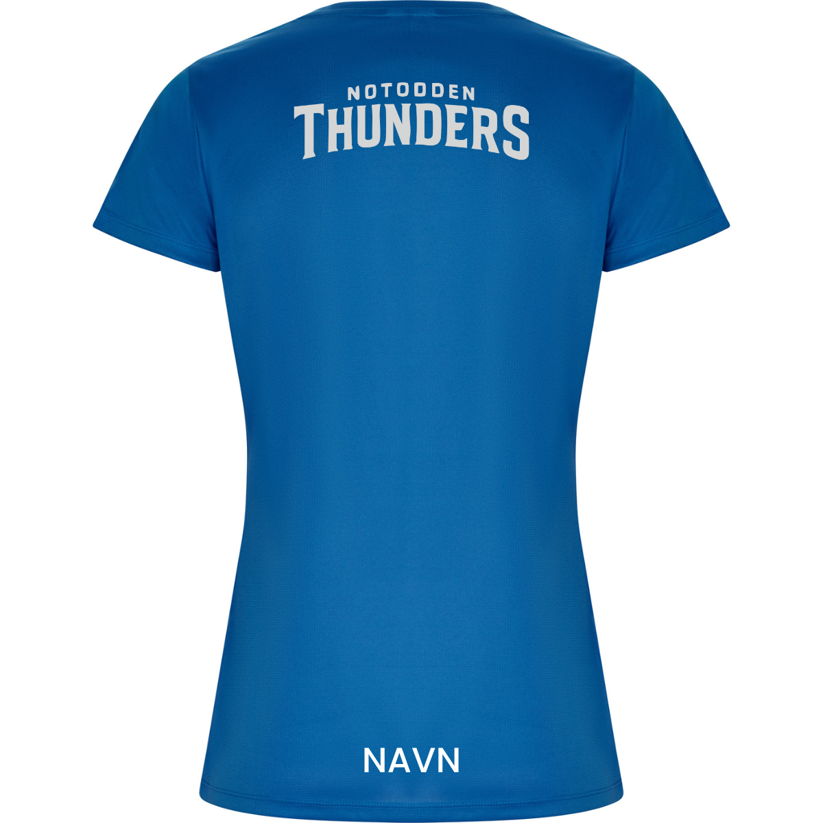 Figursydd teknisk t-skjorte for dame i resirkulert CONTROL-DRY polyester (135 gsm) med pustende waffle interlock-stoff. Trykket med Notodden Thunders-logo på brystet og klubbnavn på ryggen. Mulighet for navn og initialer. GRS-sertifisert og produsert i resirkulert materiale.